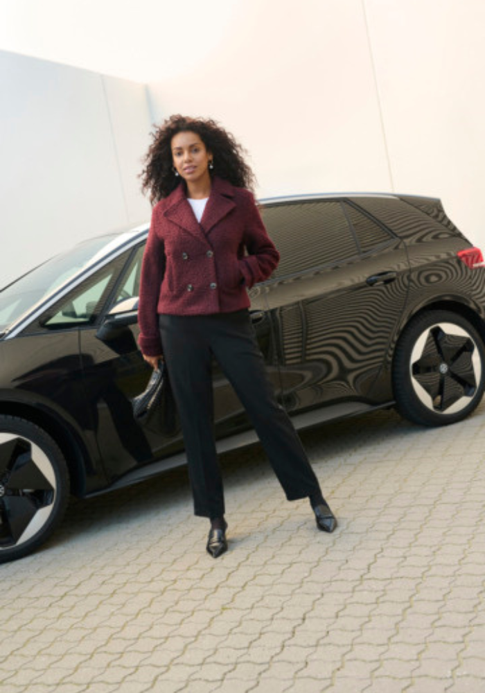 A timeless piece with a modern edge — this bouclé short jacket in rich burgundy adds instant sophistication to any outfit. Beautifully tailored in a double-breasted design with a classic collar and front pockets, it offers both style and practicality. The textured bouclé fabric brings warmth and depth, perfect for dressing up denim or layering over dresses for a chic autumn look.