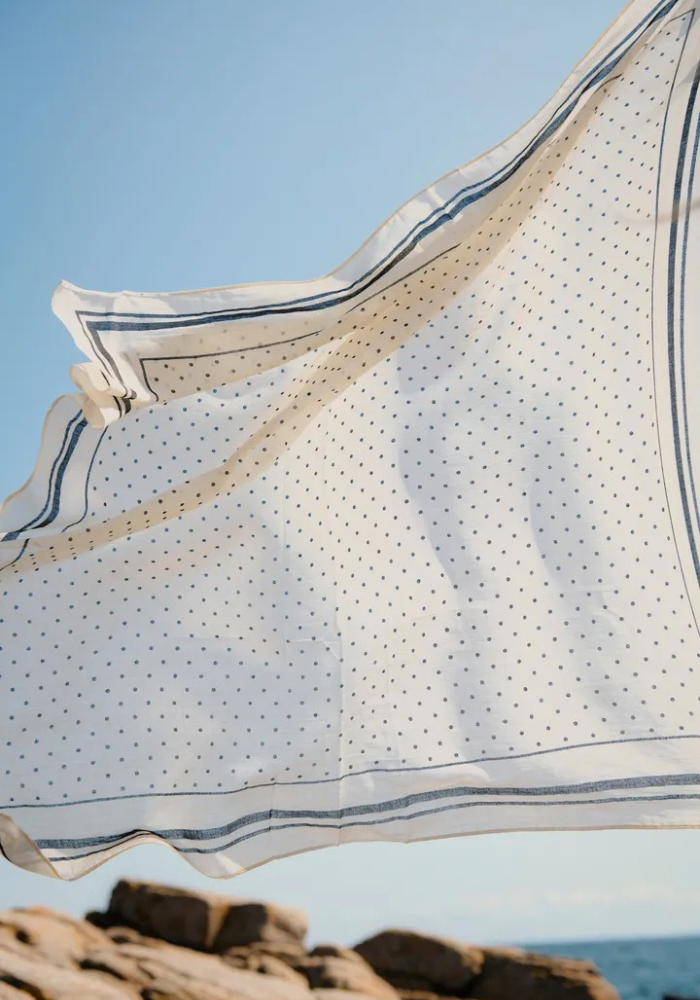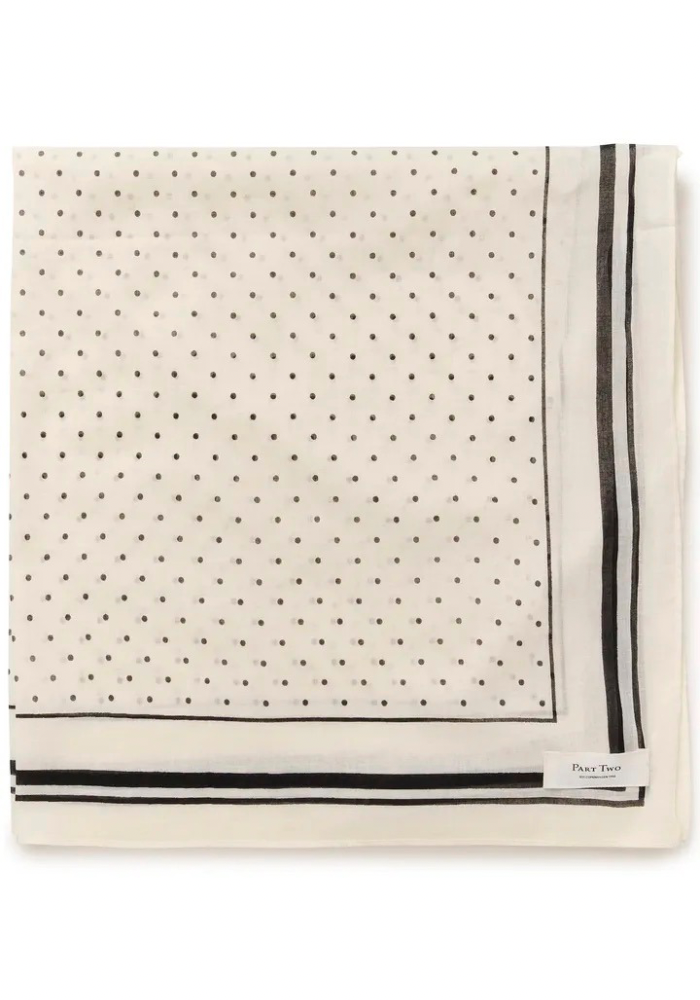 Available in two versatile colourways — deep navy with cream spots or soft cream with black spots — it’s an easy accessory to pair with both casual outfits and smarter pieces. Wear it loosely around the neck, draped over the shoulders, or tucked into a coat for a subtle finishing touch.